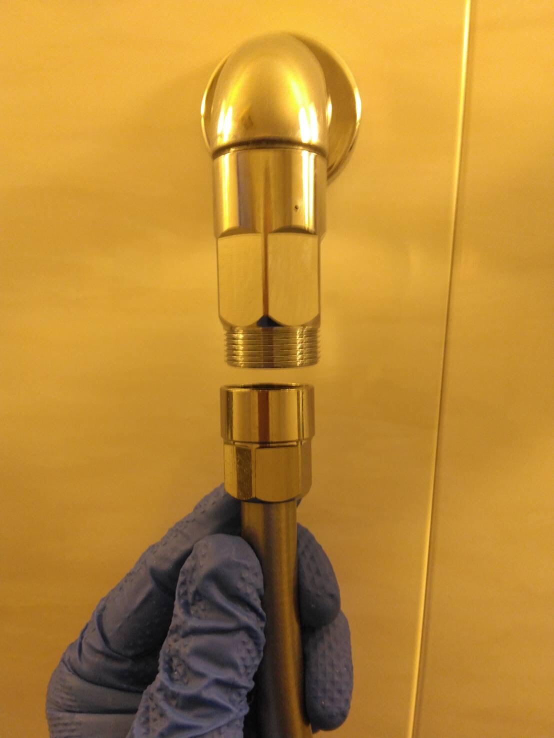 この度は、浴室のシャワーヘッドをお客様お手持ちの物に取り替えた後、しばらくして水漏れを起こしたため見て欲しいというご依頼でした。
