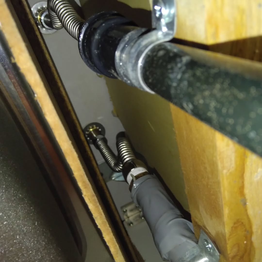 施工する場合にはフレキ管で接続をするのですが、この現場は特に施工スペースが狭く指先にしか力が入らない状況も多くあった為、工具を廻すのにかなり苦戦を強いられました。このタイプは基本的にかなりの狭所作業となります。