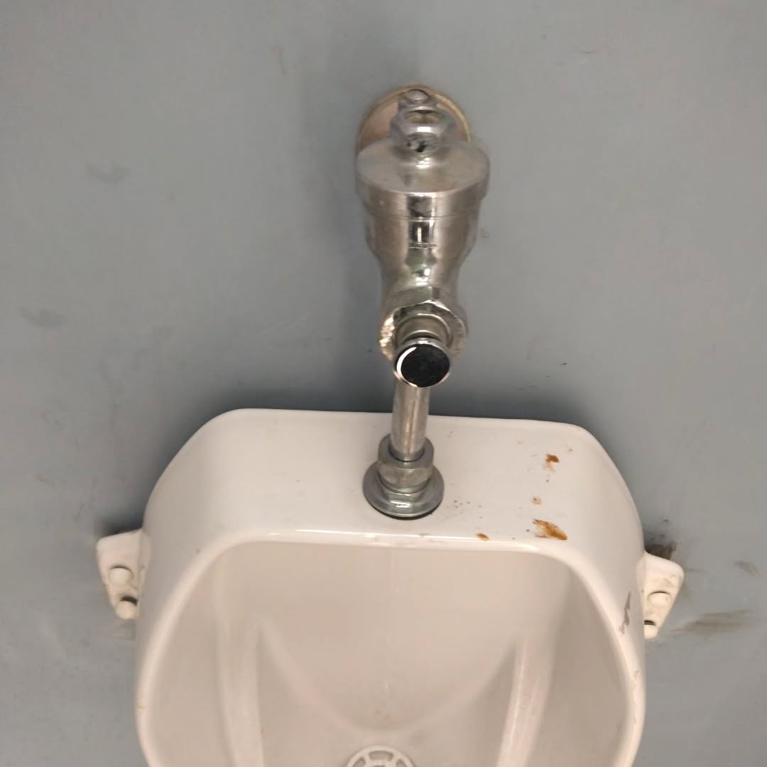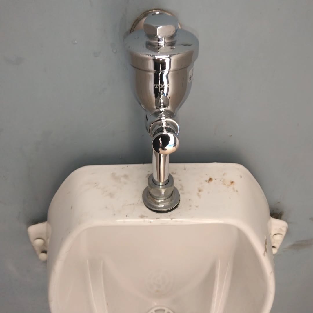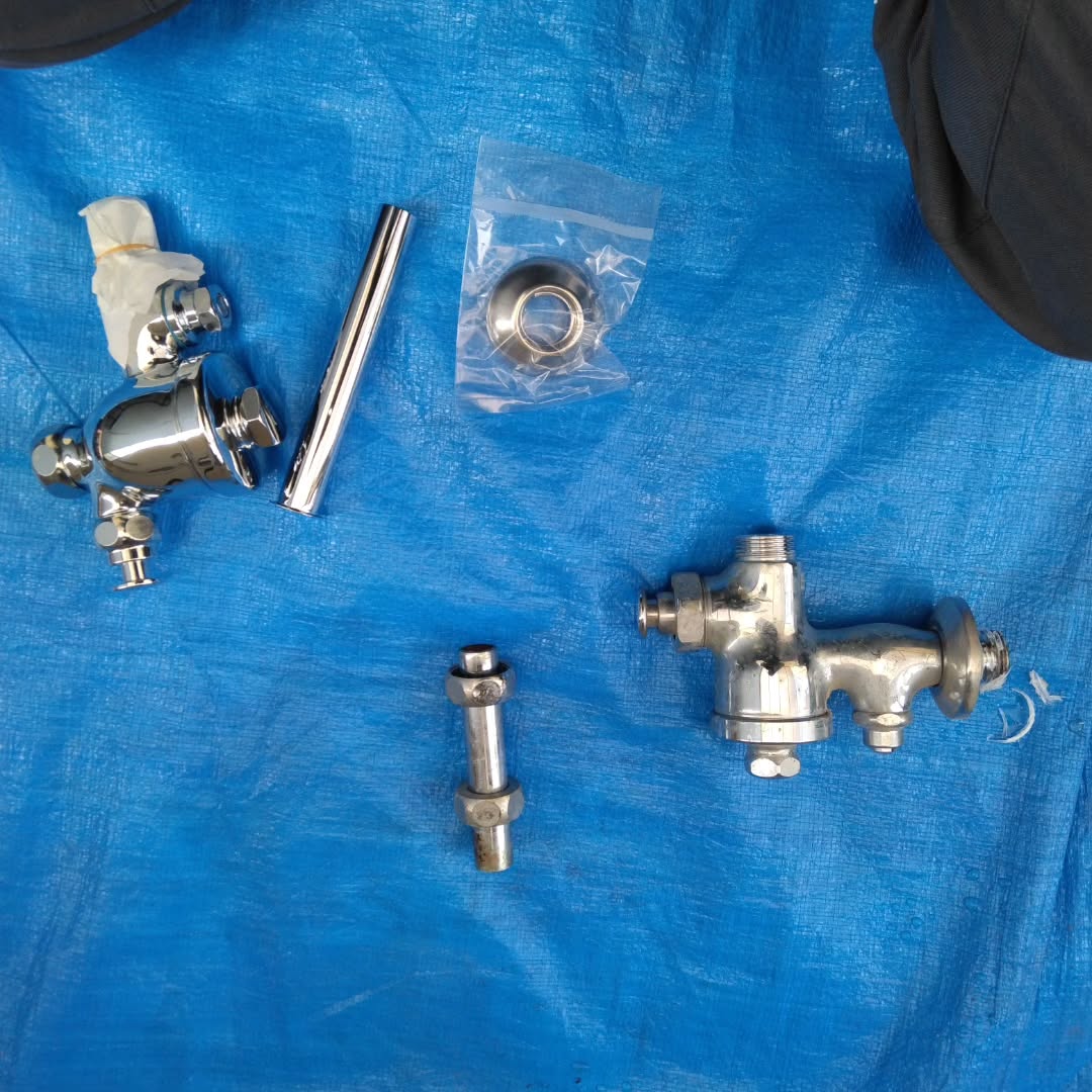 今回はこのフラッシュバルブを交換させて頂きました。水道メーターで水を止めて古いフラッシュバルブを新しい物に変え、小便器への接続管も新しい物に交換致しました。