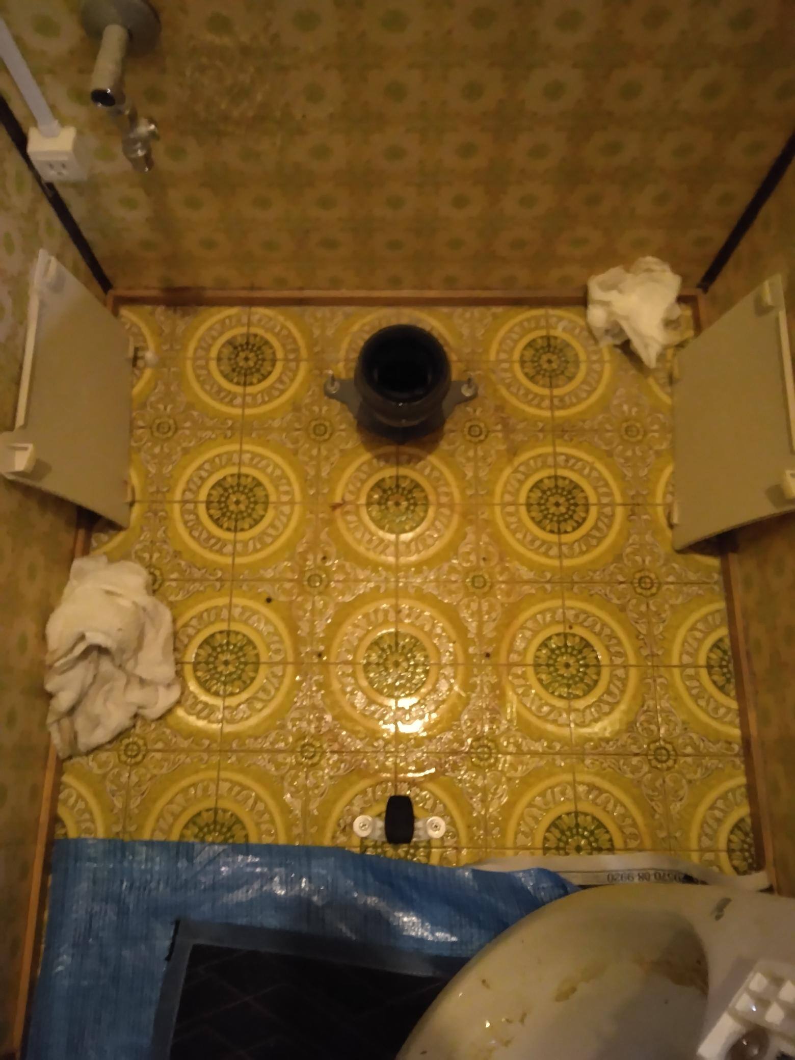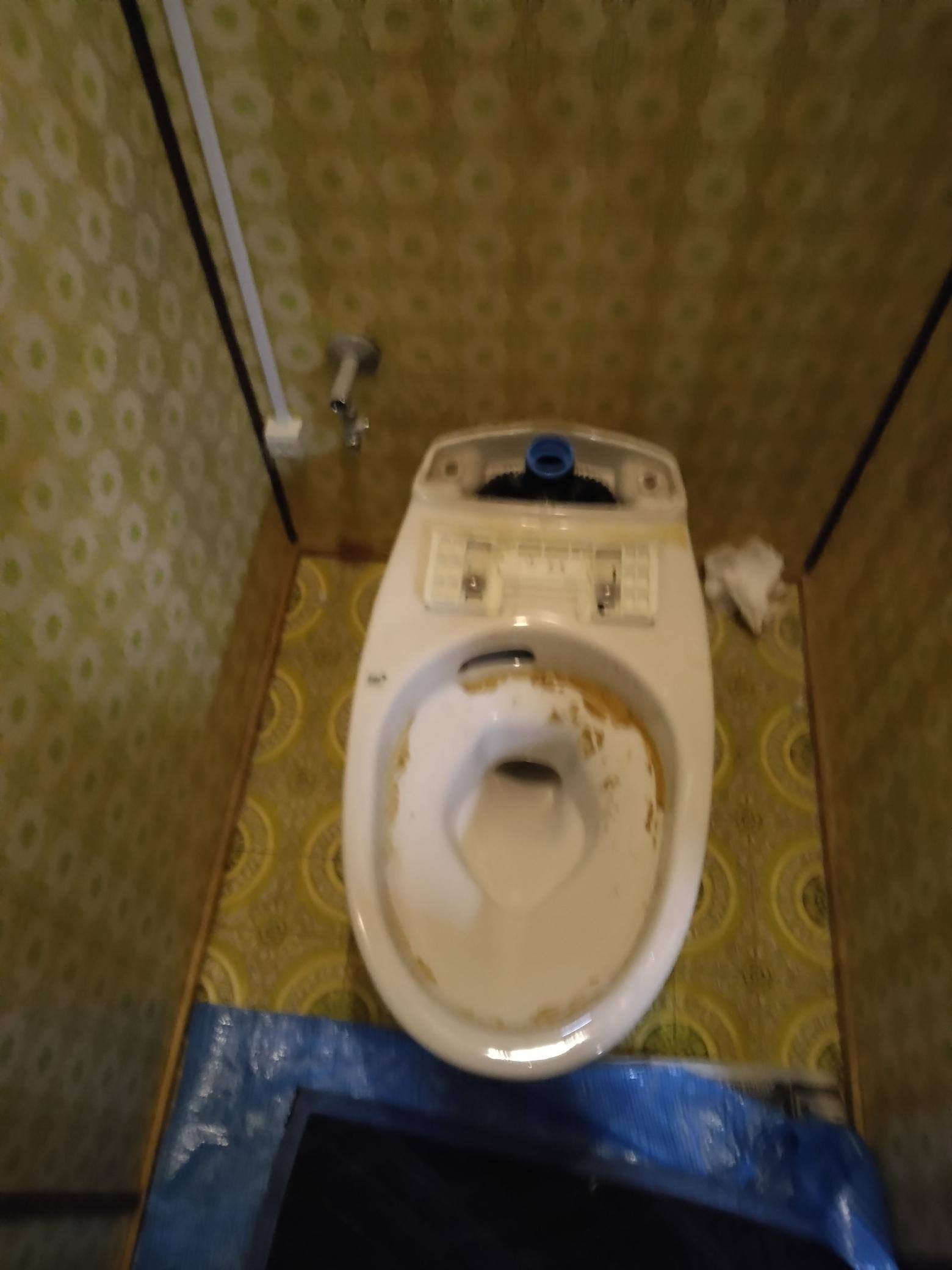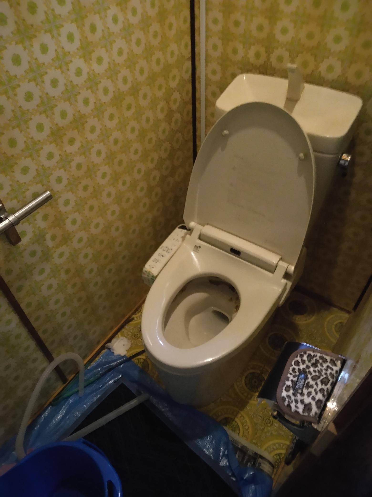 先ずローポンプ作業を行いましたが改善されず、次に高圧ポンプを使用しましたが改善しなかったため、最後はトイレを解体して取外しを行う便器脱着作業を行いました。