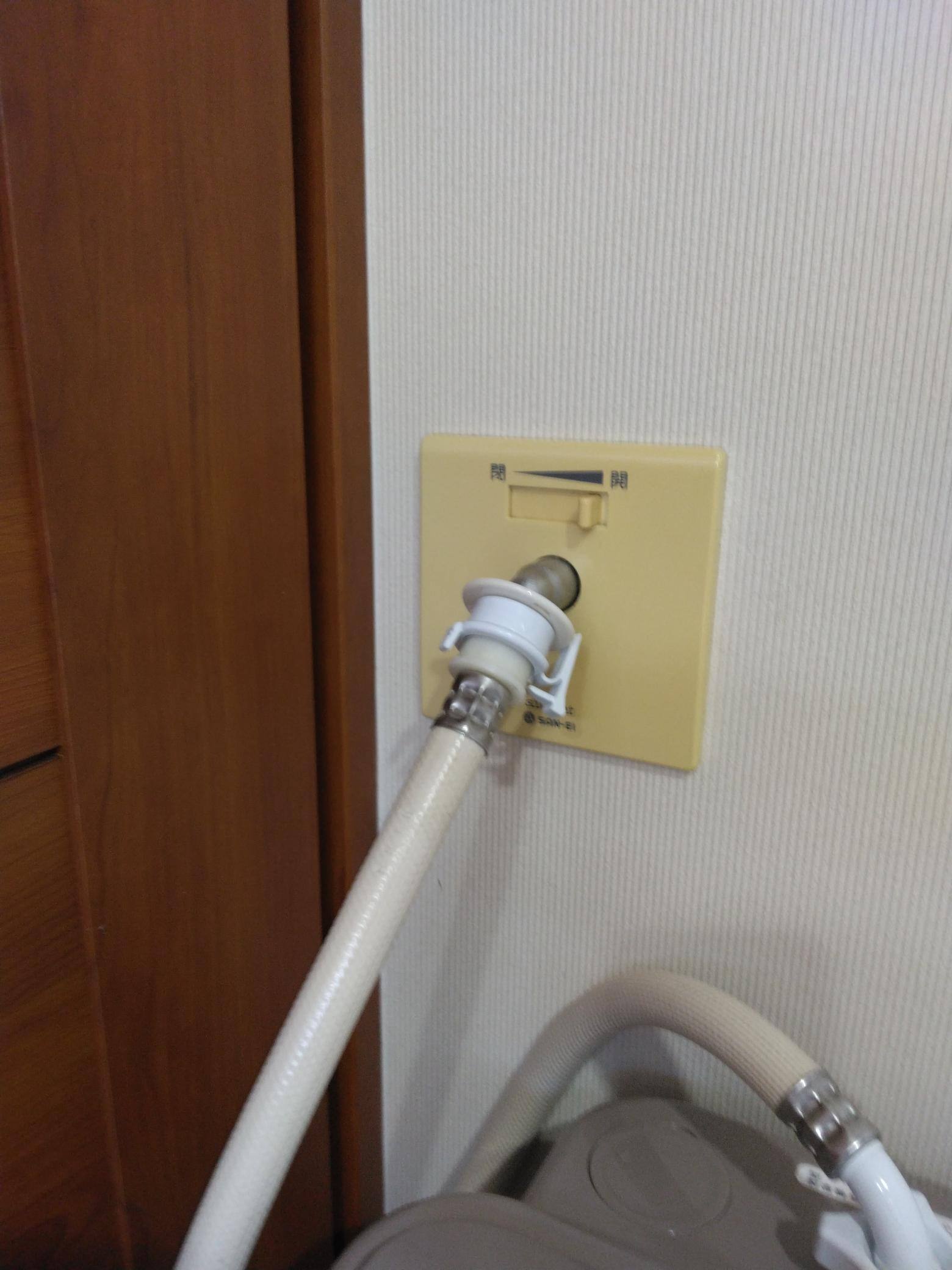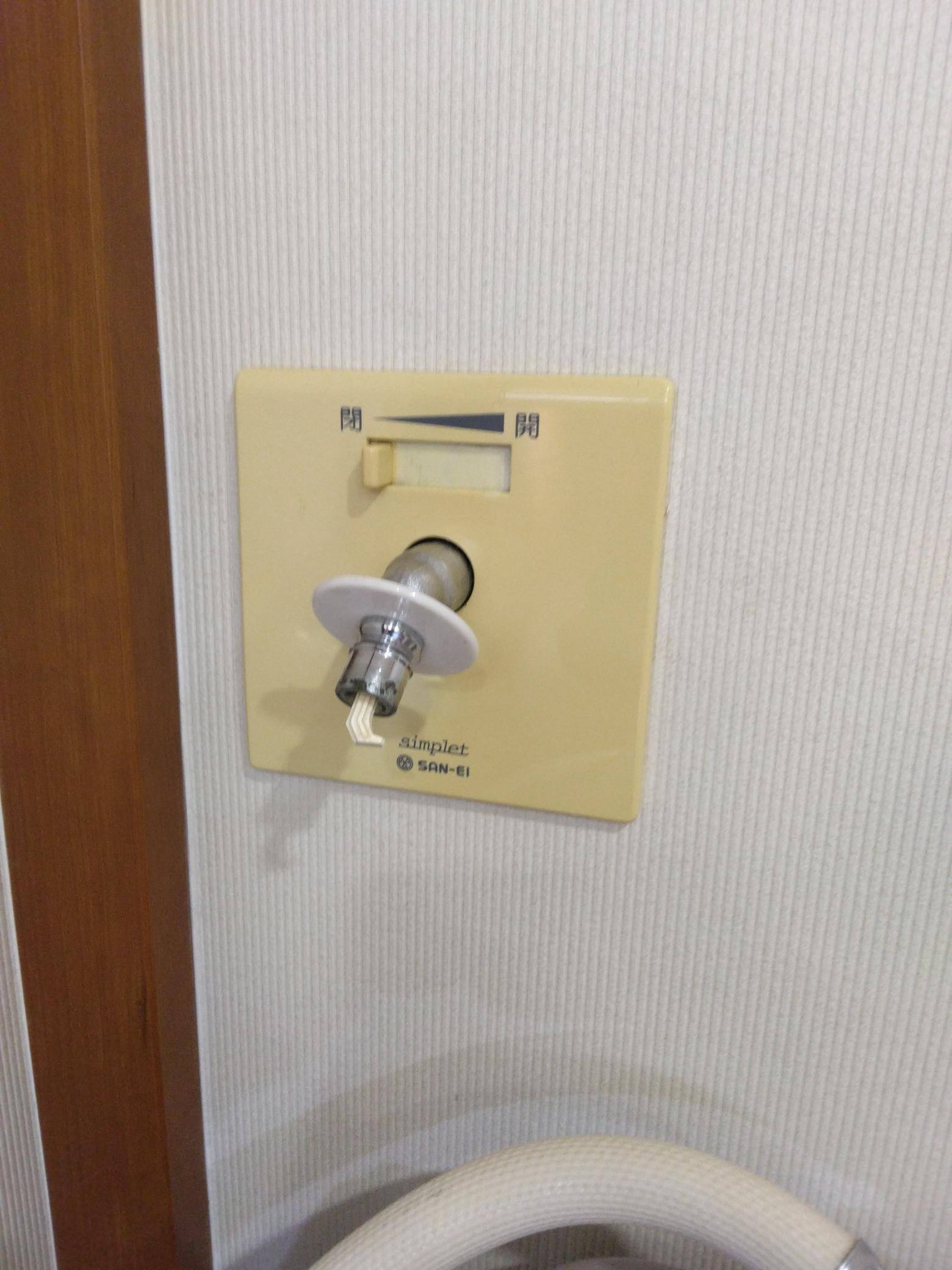 一般的な蛇口に接続アダプターなどを含め給水ホースを接続しますが、今回のタイプは壁にパネルが設置されています。
