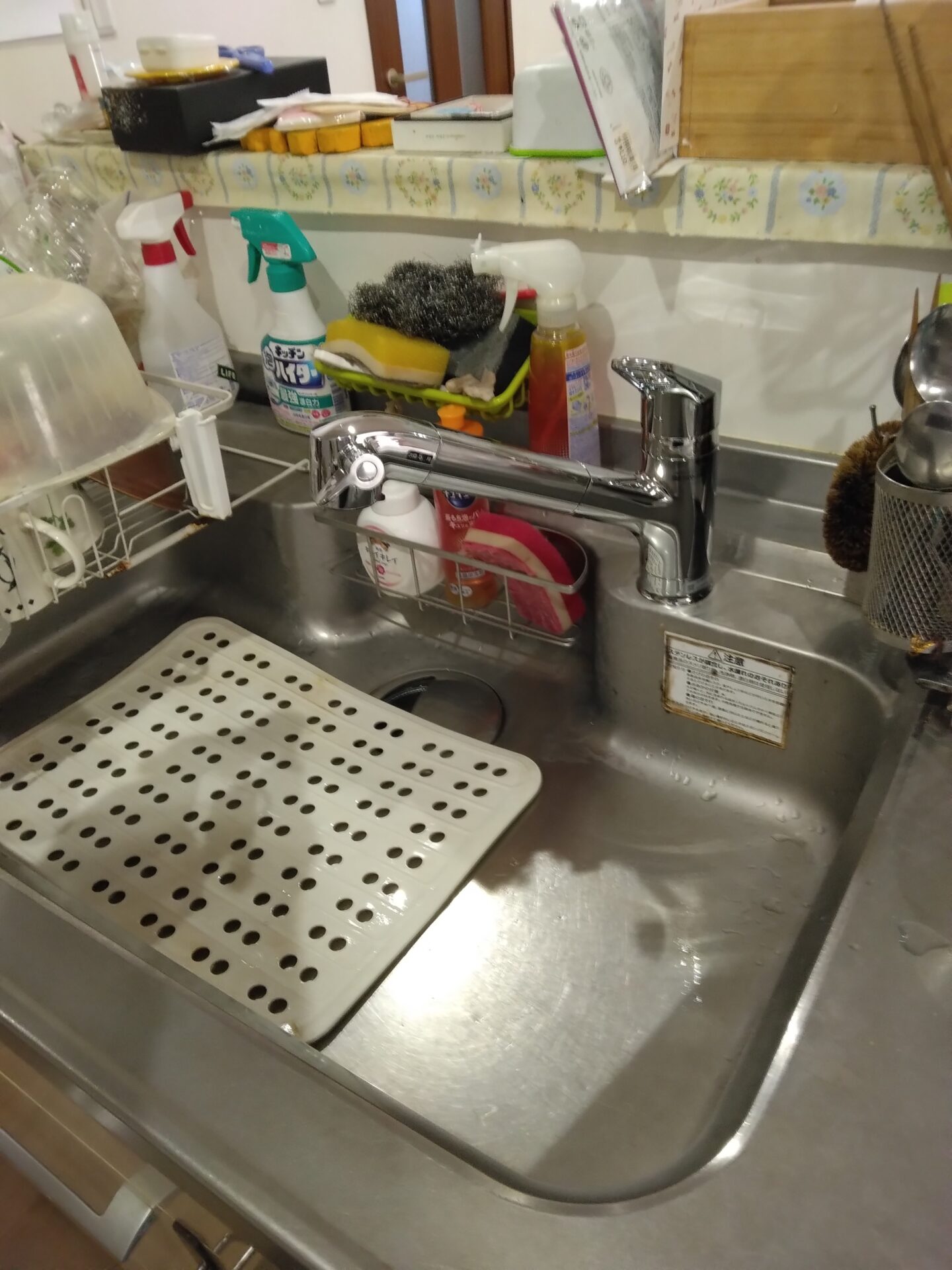 今回水漏れが起きてしまったキッチンは13年前にリフォームをされていて、水栓が Panasonic メーカーのため修理部品の供給が無く、基本的にはすいせん本体の交換のみとなる旨をお伝えし別メーカーへの水栓本体交換を行う事となりました。