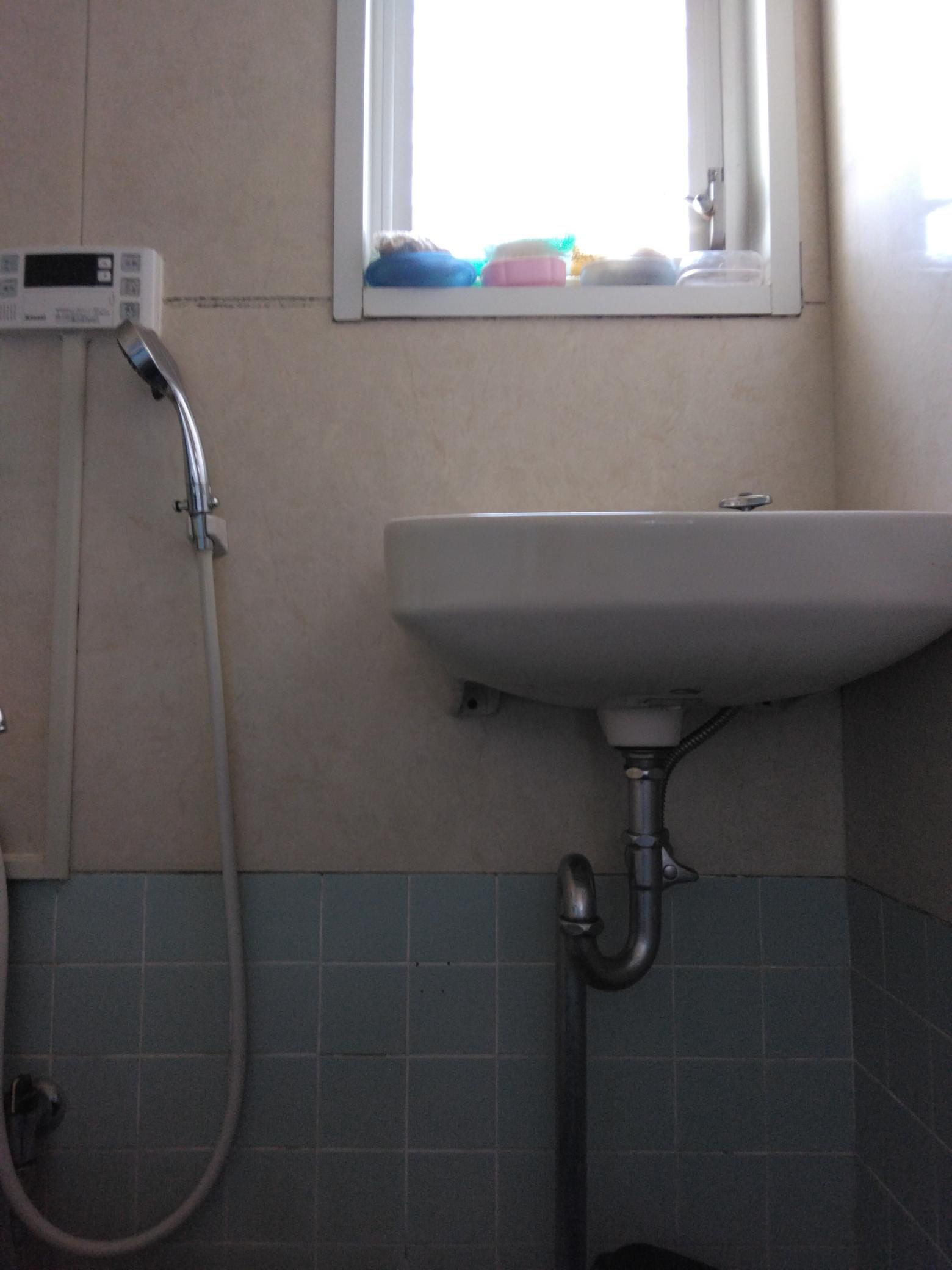 到着をした時には、蛇口が傾き壁際に水がしたたり落ちている状況でした。