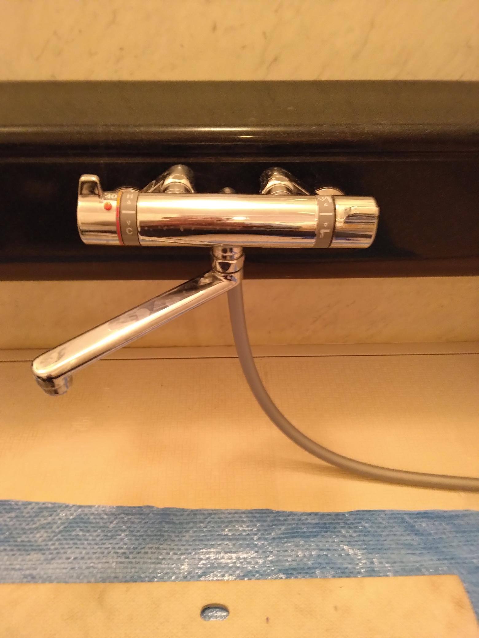 今回は浴室水栓事態もやく20年使用されていた経緯もあり、水栓本体とシャワーホース、調圧弁を含むお取替えとなりました。
