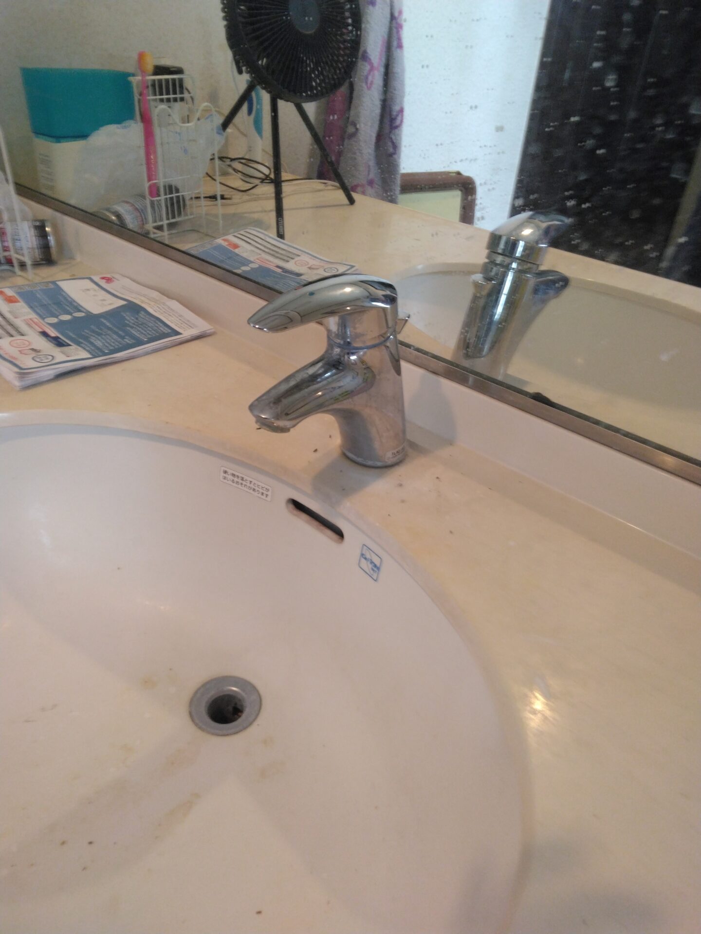 この度は洗面台の水栓から水漏れがあり、その際にお客様ご自身で修理をしようとしたところ破損をしてしまったという事でお伺いをさせていただきました。