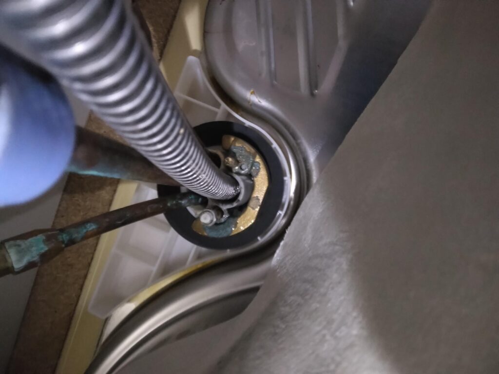 蛇口の真下、裏側を確認すると取付口部分も錆がまわってしまい取外しを行うのに少し時間がかかると判断し、作業は翌日に行う事になりました。