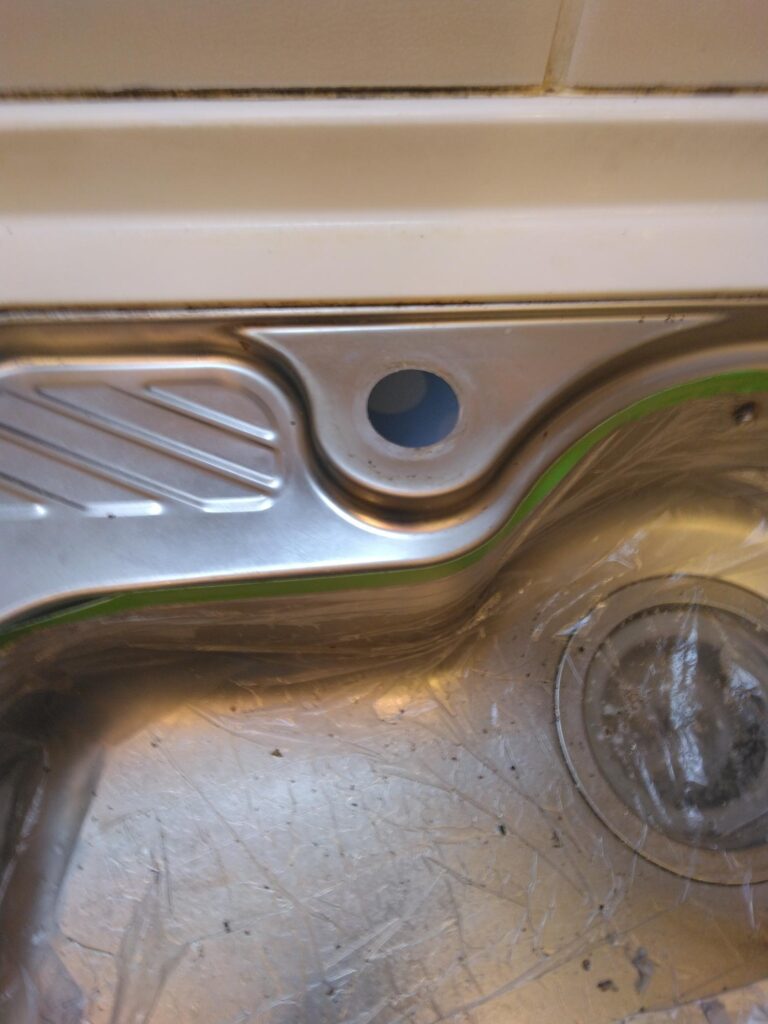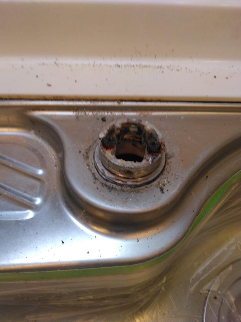 この様な状態になるとふだんの施工時間の約倍の時間がかかるのと、慣れていないとシンクに傷などつけてしまう可能性がございますので、ご自身で交換作業を行う際にはご注意ください。