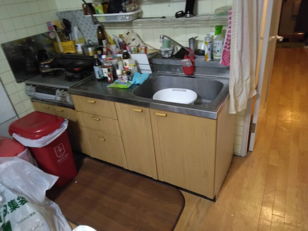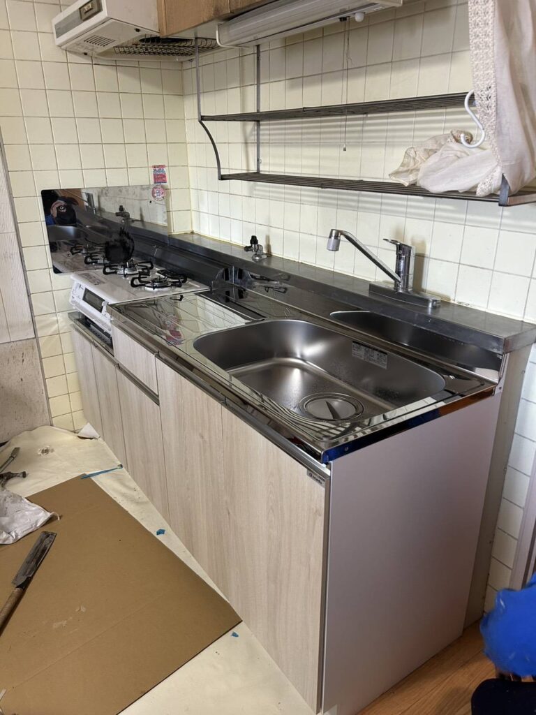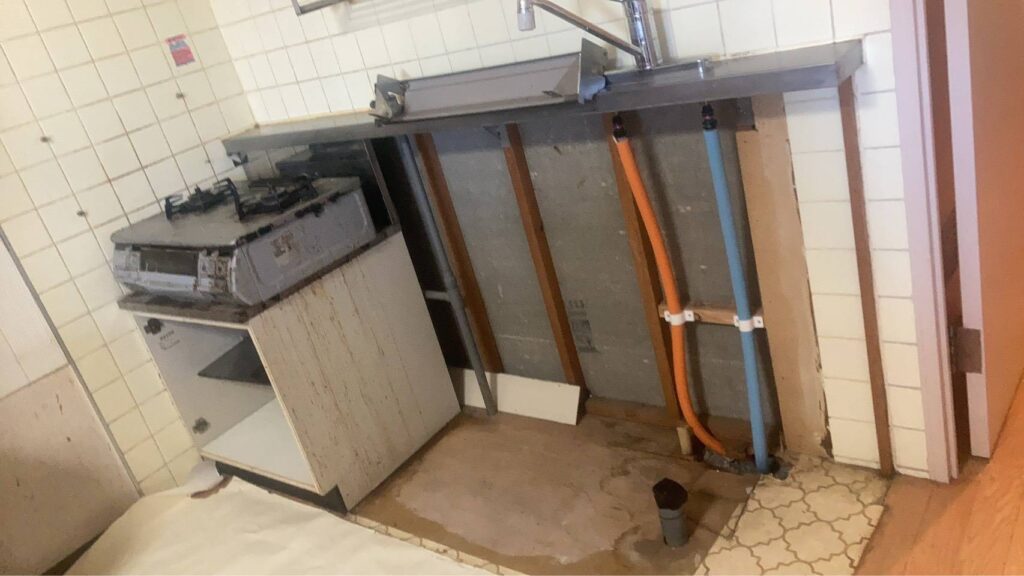 流し台隣のガス代も古くなっていたので、今回はキッチン流し台の交換とガス台収納部のリペアを含むリフォームを行う事となり後日に改めて工事となりました。