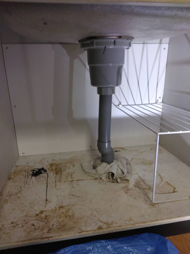 この度はキッチンでお水を流すと、収納部分に漏水してしまうとのご相談を受けご訪問をさせていただきました。