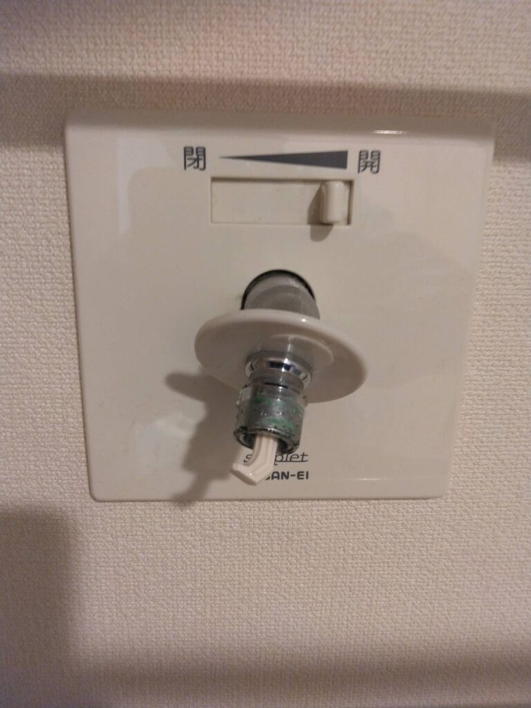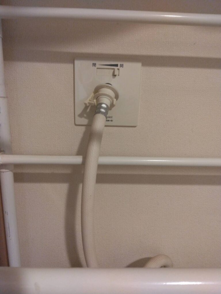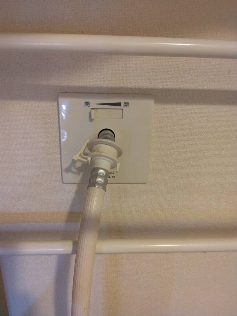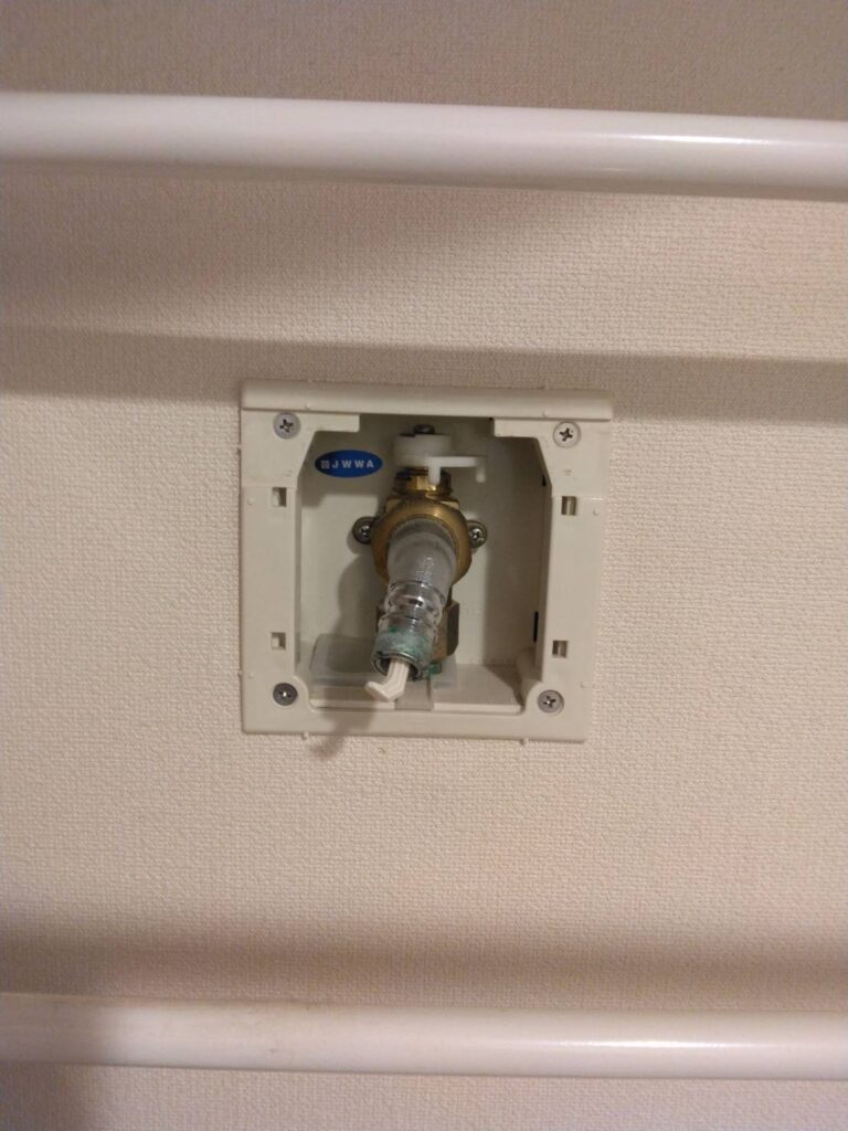 この度は、洗濯機のホースを壁に埋め込まれている水栓に対して接続をしている、埋め込み式洗濯コンセントというタイプで名称はシンプレットと言います。