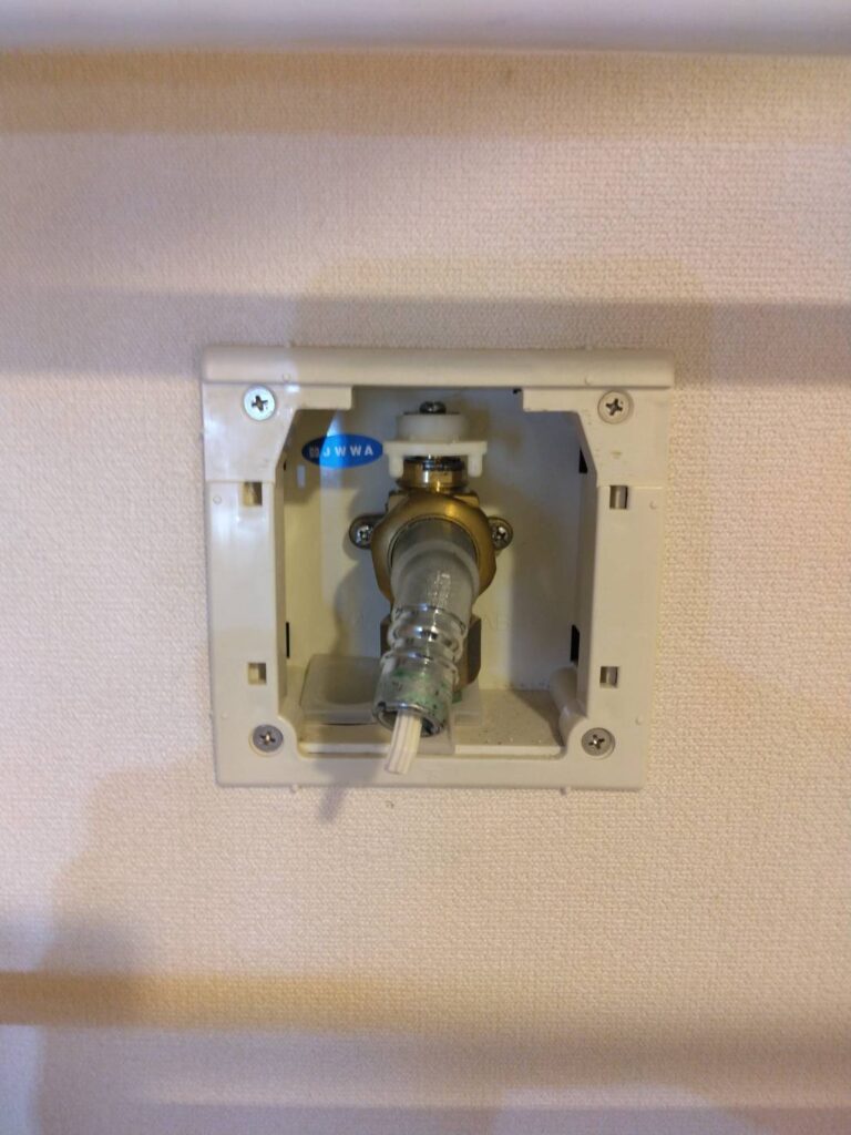 通常の蛇口などに洗濯機のホースを接続する物ではなく、今回の様に壁にのプレートにある接続口にホースを接続する埋め込み式洗濯コンセント、シンプレットの修理でお困りでありましたら弊社みずいろ水道サービスまでお気軽にご相談ください。