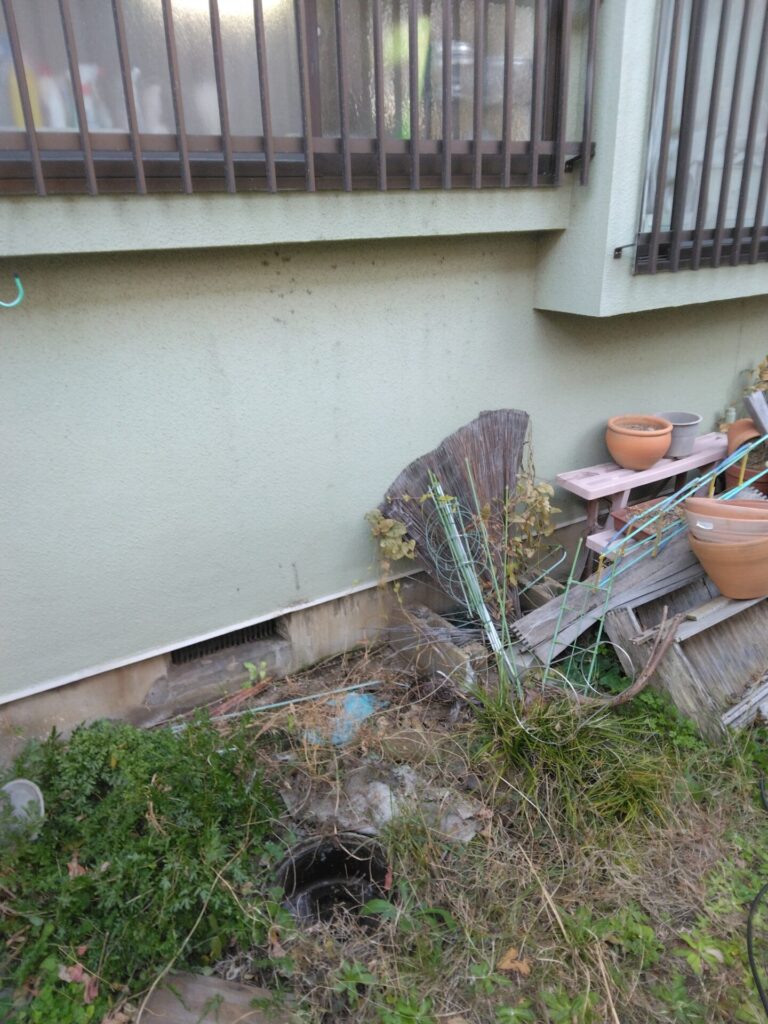 戸建て一階部にあるキッチンの蛇口を使用する度に、足元に水が出てきてしまうという事で点検をさせていただいたところ、キッチンに水を流すと収納部の下にある排水管の接続部から水が逆流し溢れ出てくるのを確認したため、排水の出口が屋外にあるので排水マスを確認したところ、排水管を油汚れが塞いでいて屋内からの水が流れてこない状況でした。
