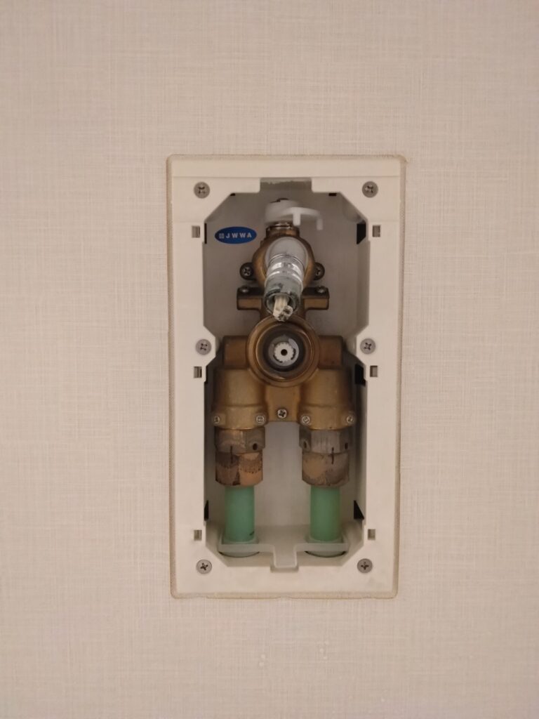 こちらの壁のプレートに切り替えレバーや温度調整などがついている洗濯ホースを接続している物を、埋め込み型洗濯コンセントといい使用10年を過ぎると切り替えのレバーが堅くなり、動かせなくなってしまうという症状が現れます。
