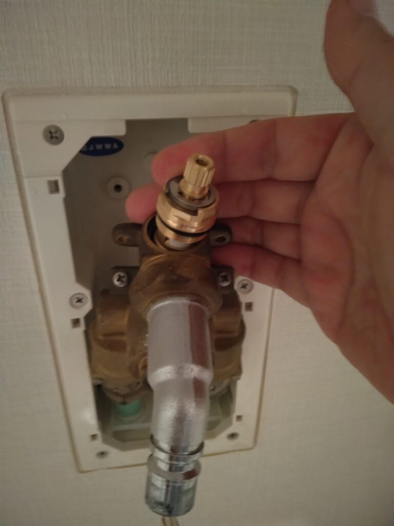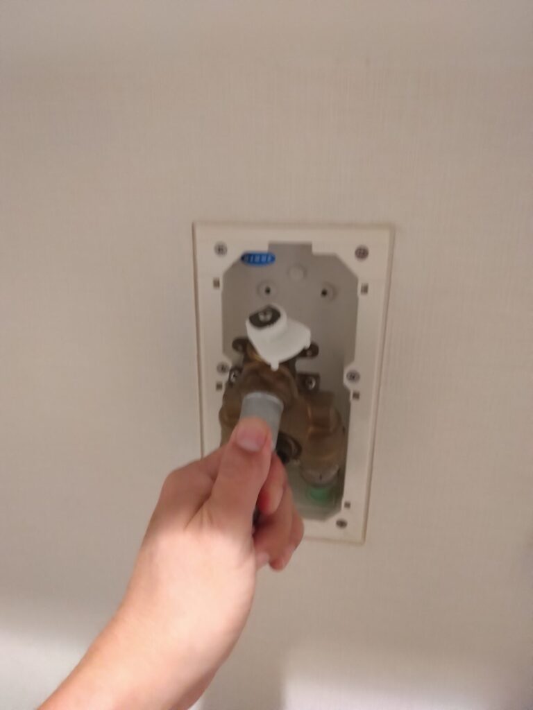 この度は、洗濯機のホースを繋いでいる壁のプレートの切り替えレバーが堅くなってしまったため修繕のご依頼で訪問をさせていただきました。