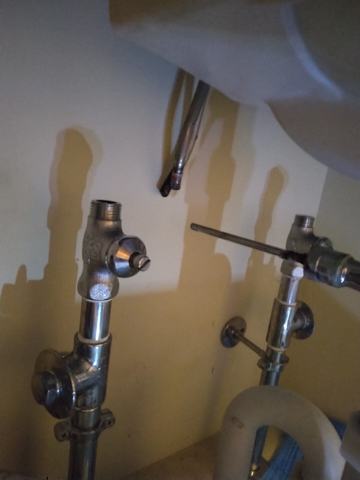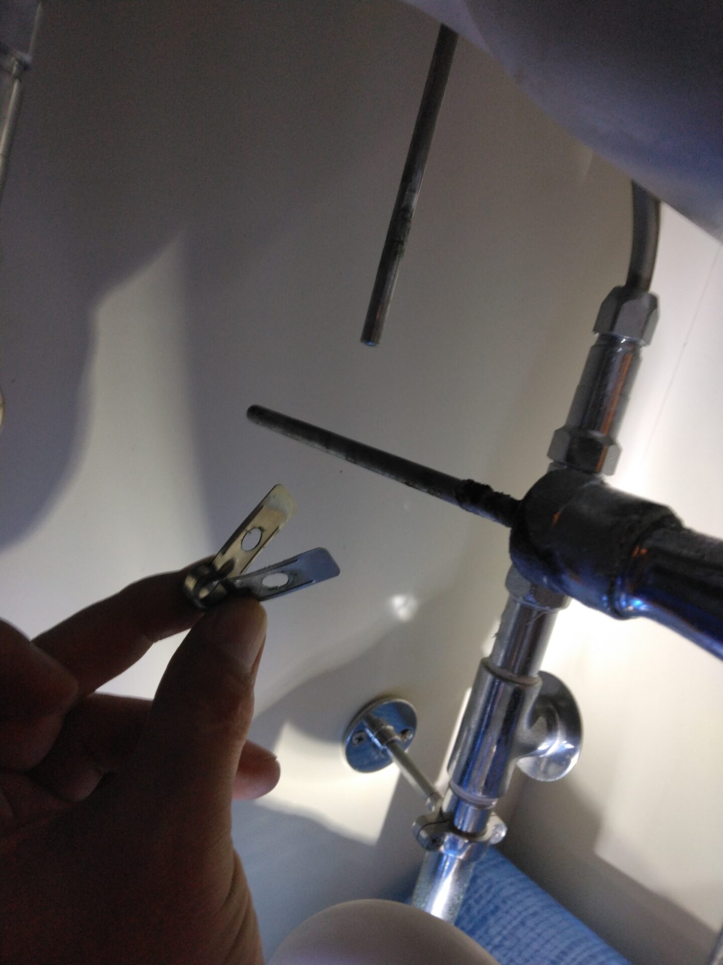 水栓の裏側にある引き棒を動かすことにより、排水口にある排水栓と連動して排水栓を開閉するポップアップ式の水栓のため、同じ TOTOメーカーの後継機種にて交換を行いました。