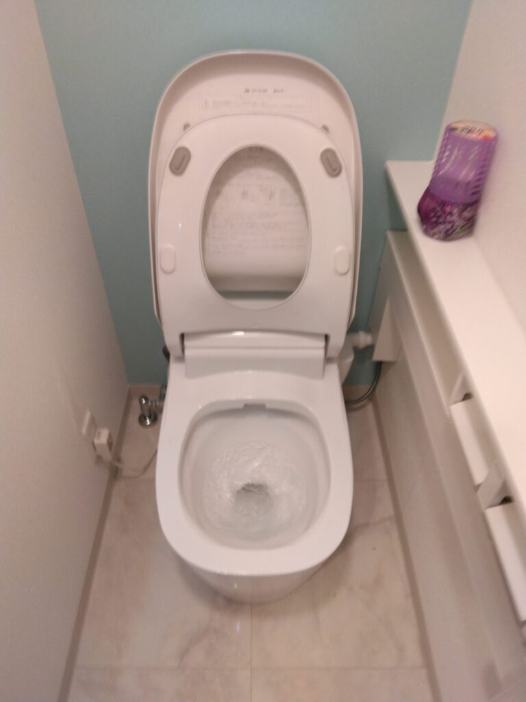 今回トラブルになった原因のトイレが、Panasonic のアラウーノというタンクレストイレ ( タンクの無いトイレ) で、このアラウーノというトイレは比較的に詰まりのトラブルが多く、商品自体が割安で取引されているなど一度トラブルが起きてしまったらトイレの買い替えを推奨させていただく様なケースが多く、半年前にもアラウーノが詰まりを起こし機材を使った後にトイレを脱着する作業を行っていたのでその際にもやはり早めの交換を検討下さいとお伝えさせてはいただいていましたが残念ながら半年ほどが経ちまた詰まりを起こしてしまいました。